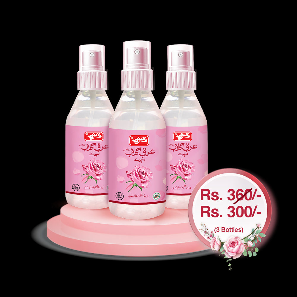 Get more, pay less with Qarshi Arq e Gulab Khalis Spray Economy Pack! Buy 3 bottles of Arq e Gulab Khalis Spray and SAVE Rs. 60!