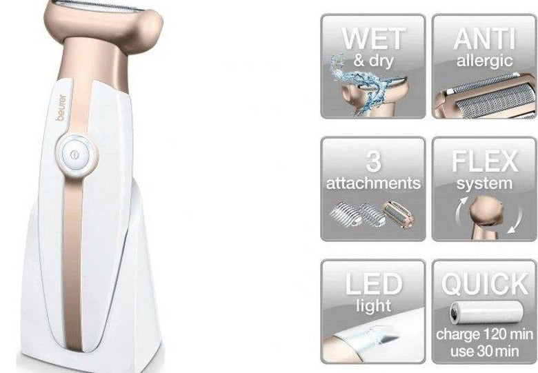The lady shaver for soft and silky skin! Thanks to the flexible shaver head, the shaver adjusts optimally to the skin to remove hair effortlessly, even from those hard-to-reach places. The lady shaver is suitable for use on wet or dry skin. The exfoliation attachment helps to remove dead skin cells and prevents ingrown hairs.